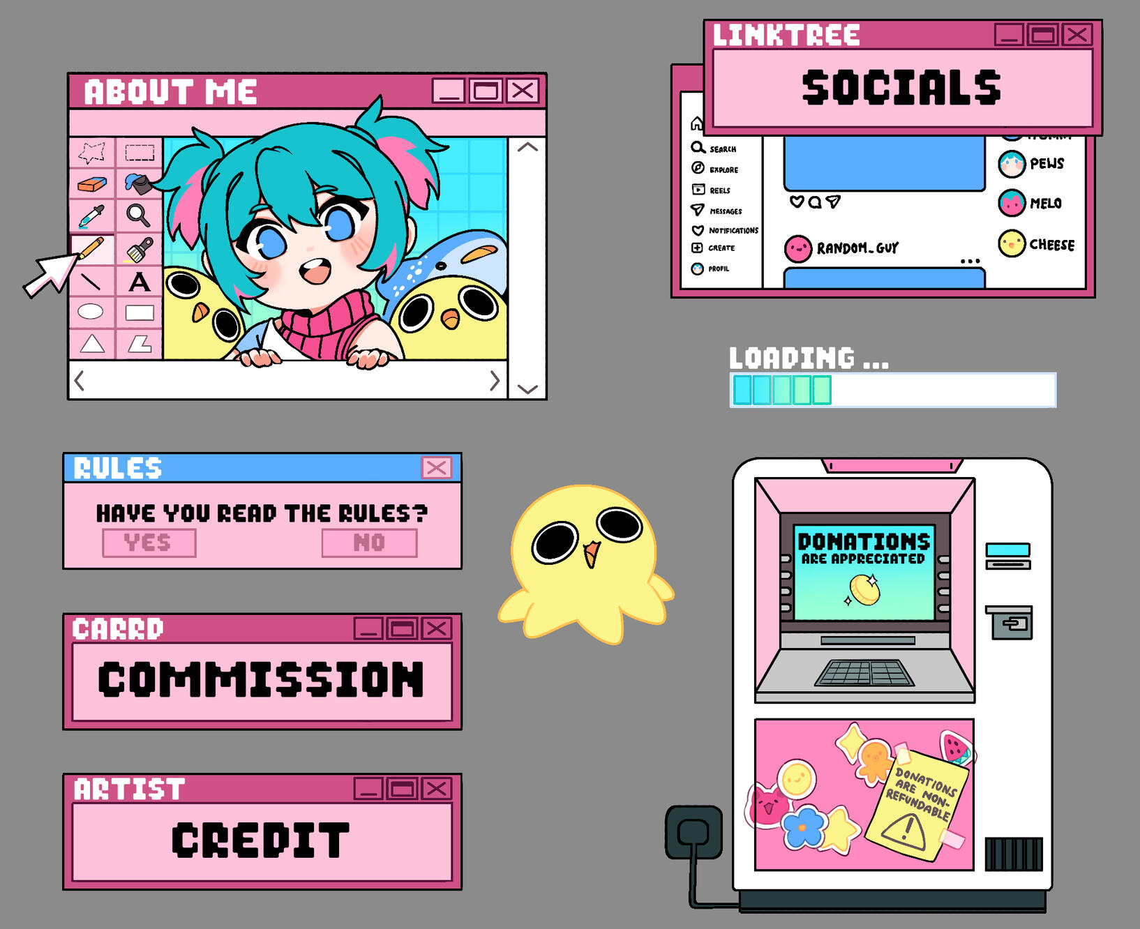(Beachte, dass ich meinen eigenen Style habe und diesen NICHT aufgrund einer Commission anpasse/verändere)✅ Fanart, Own Character Designs, neue Character Designs (basierend auf Beschreibung), PNG-Tuber❌Mecha, ältere/muskulöse Menschen, Gore,Logos, detaillierte Tiere, Realistisch, NSFWHow to Order